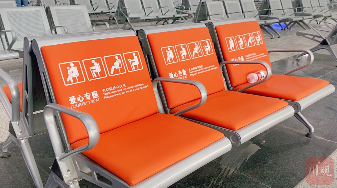 在候车大厅设置了8个闸机口,共有2014个候车座椅、580个茶几,其中有84个爱心专座,设置于两侧通道检票口。此外,大厅还设置了军人候车区、重点旅客候车区、母婴室,并配备服务台、无障碍电梯、餐饮区、商超区、饮水区、抽烟室等,致力于将西昌西站打造成现代化高铁“新窗口”,满足旅客不同的候车需求,整个大厅可容纳2000左右的旅客量。