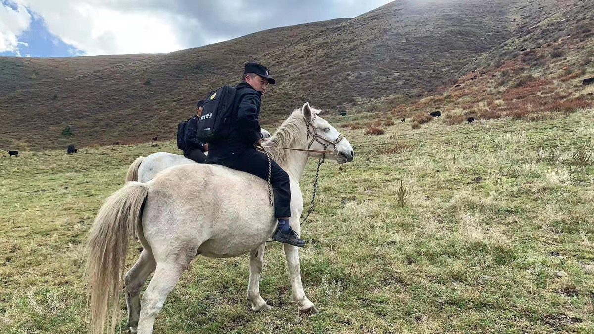 骑马、驾车,入村寨、走草场,自2021年6月“背包警务”推行以来,甲学镇派出所的民辅警每天要走上几十公里,风雨无阻,送服务上门,让警务工作全方位、无死角覆盖整个辖区。