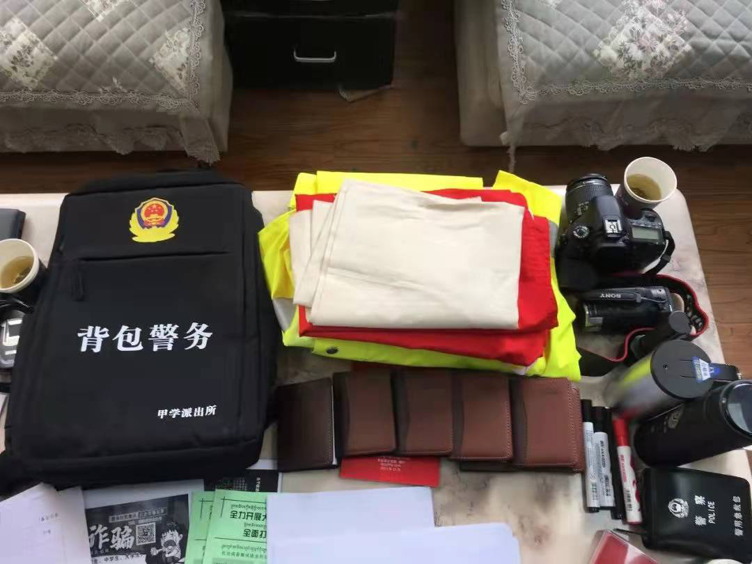 民警背包里装的各类宣传手册、未领取的身份证、调查问卷、人员信息采集表、户籍办理明白卡、记录本和相机等。