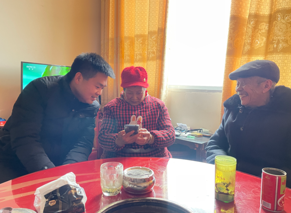 余安波看村里老人玩抖音