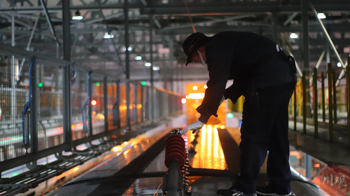 1月17日春运首日,0点时分,中国铁路成都局集团公司成都动车段动车组检修库依旧灯火通明,地勤机械师们正奔走在检修库内为即将上线的动车组进行全面“体检”,重点对动车组头灯、雨刮器、走行部、高压牵引设备等行车关键设备开展检查,对动车组防寒加热设备状态做好确认,保障动车组在冬季严寒天气下的运行安全和旅客乘坐舒适性。