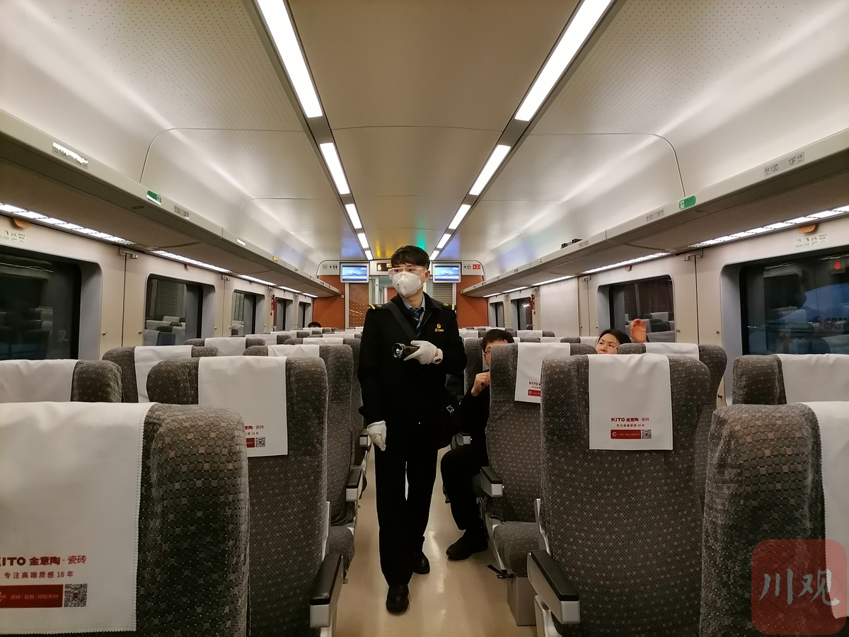 截至川观新闻记者发稿时,春运首日,成都动车段已投入126组动车组上线运行,动车组上线率为86.9%,开行成贵、成雅、成灌、绵泸、西成等中短途线路和成都往返北京、上海、广州、厦门、南京、烟台、秦皇岛等长途线路,共有169名随车机械师担当了春运首日的动车组值乘任务。