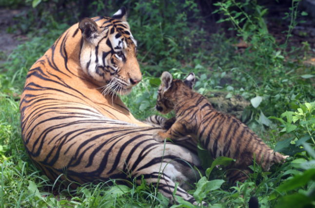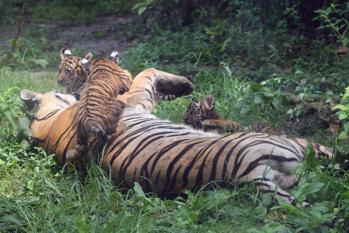 这三只小东北虎于2021年5月15日出生,均为雄性,出生时体重约2斤,由虎妈妈亲自养育。