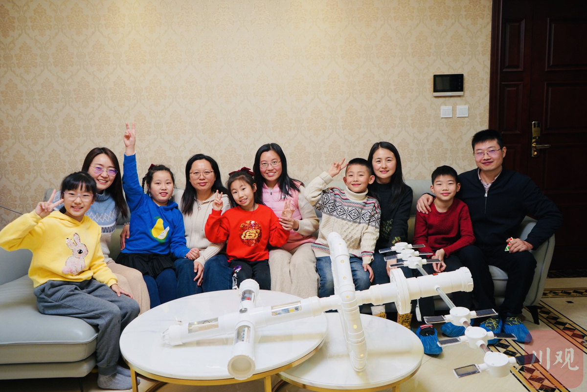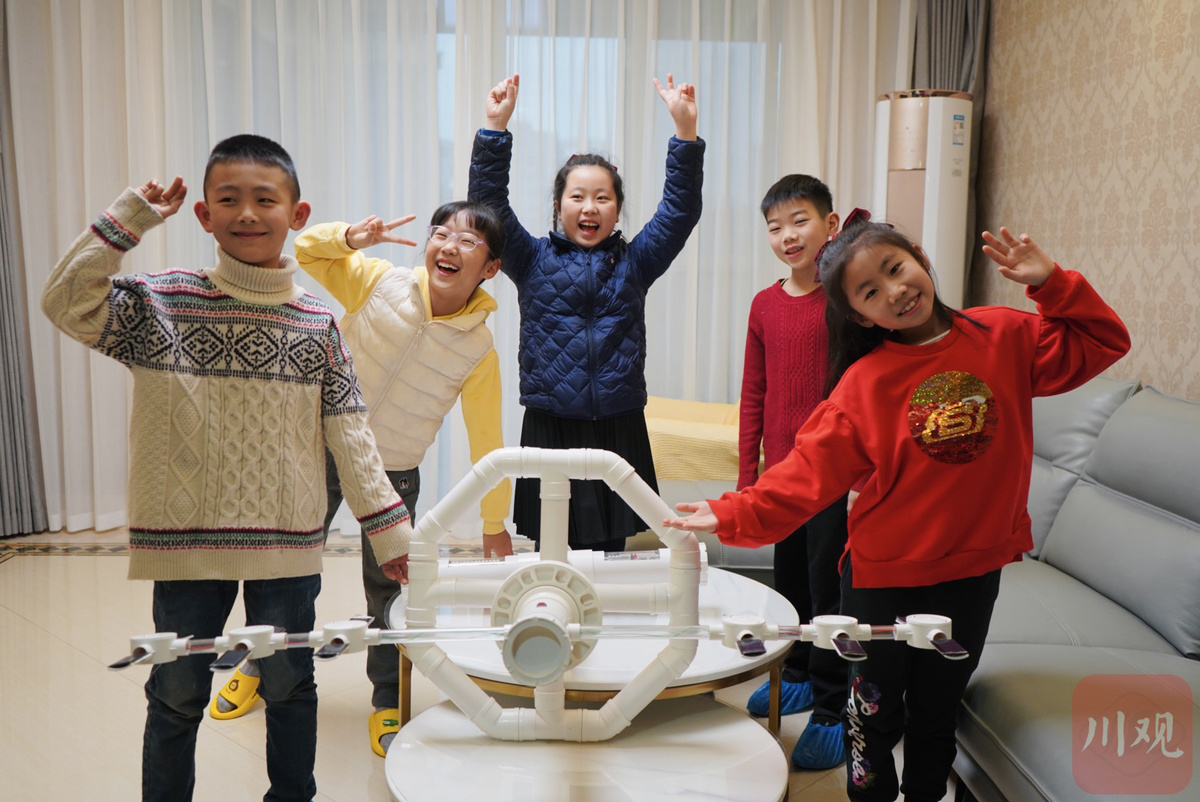 1月23日上午,成都市成华区建设巷13号一栋居民楼内,成都市盐道街小学三(三)班5名小朋友聚在“大本营”,一起为寒假小组作业——一个一米长的“小小空间站”继续做调整。