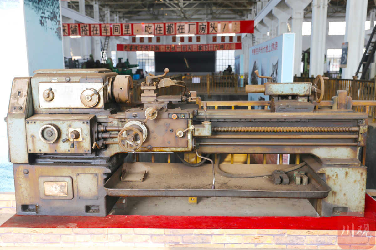“这里是以前的生产车间、个头小些的有车床、铣床、磨床,当时用的大茶缸子、随身听……”李长海说,在泸州,与主城区隔江相望的茜草坝,1965·三线记忆博物馆,陈旧的厂房、斑驳的墙壁、沉睡的机械、红底黑字的标语、机车压过的痕迹……一句句标语、一件件老物件、一张张照片,无不印证着当年三线建设者们“自力更生、艰苦奋斗”的三线建设故事。