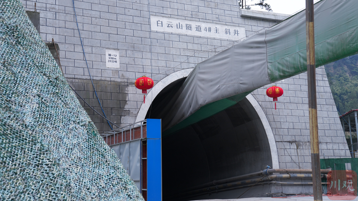 驱车前往白云山隧道4号斜井所在的内江市资中县新桥镇太河村,途经多个乡镇张灯结彩,节日喜庆余韵未散,一抵达4号斜井工地外,隐隐的施工声就从洞口传来。