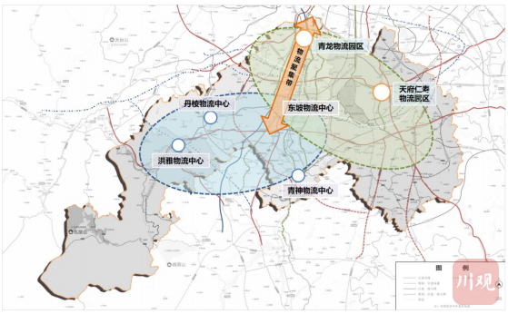 ②以眉山为中心向资阳、乐山、雅安辐射,依托成眉高新技术产业协作带、成资临空经济产业带,构建覆盖区域内商品货物流量需求,同步打造进口贸易示范、绿色发展示范的大型区域商品分拨配送中心
