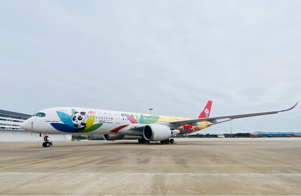 2月24日,四川航空股份有限公司(以下简称“川航”)为成都世界大学生夏季运动会量身打造的首架A350“大运号”主题涂装飞机在广州完成喷漆后顺利抵蓉。川航透露,该架飞机将很快投入运行,计划首先执飞成都往返杭州航班,并将在成都大运会国际/地区参赛团队运输中担纲主力。