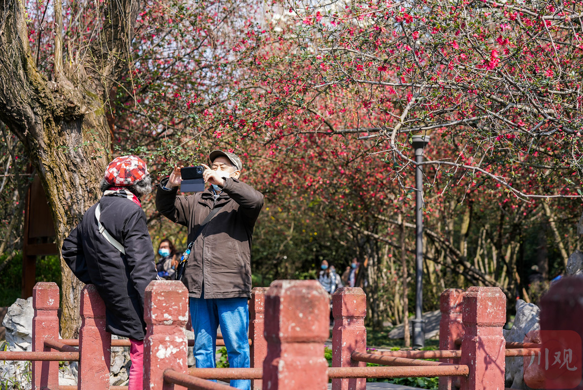 2月26日,川观新闻记者在双流区棠湖公园看到这里的海棠已经悄然绽放。海棠花下,游人结伴而行,或是驻足赏花,或是拍照合影,亦或是牵手徜徉,沉醉于这动人的花色中,尽情享受浓浓春意。