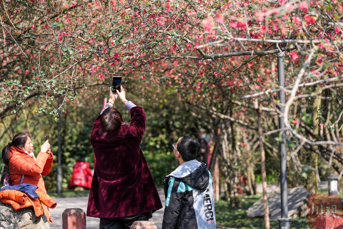 据了解,棠湖公园种植有7、8种海棠花,每年观海棠花最佳的季节是2、3月。今年由于天气寒冷,盛花期较往年有所推迟,但花期将一直持续到3月底。