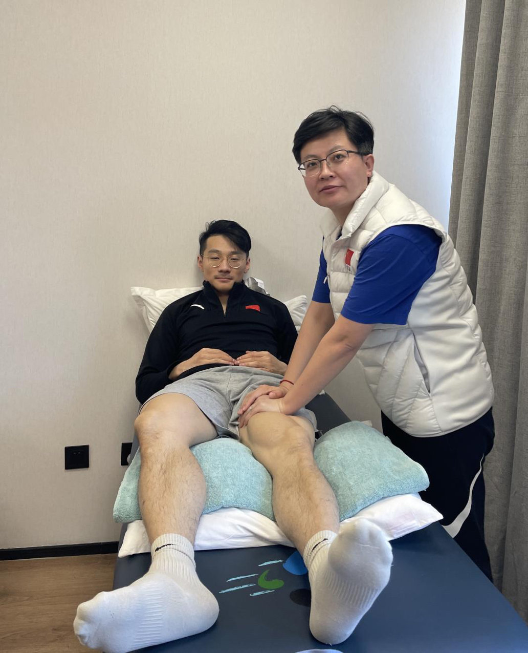 何本祥教授为速滑运动员阿合娜尔·阿达克治疗