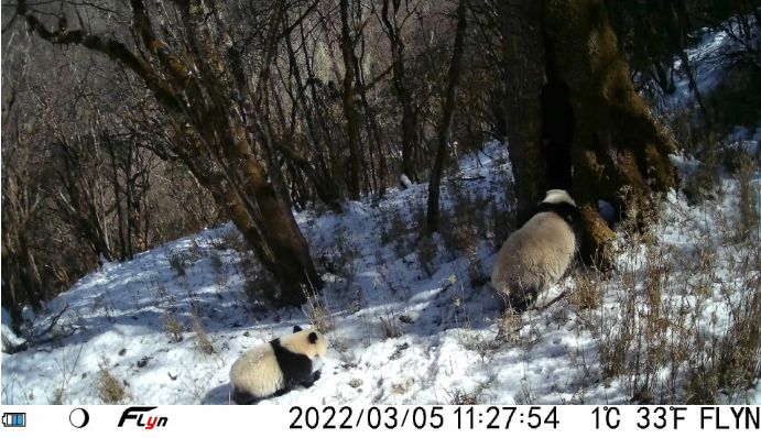大熊猫国家公园宝兴片区蚂蟥沟区域位于大熊猫国家公园核心保护区,海拔在2500-3800米左右,箭竹生长茂盛,水源丰富,是大熊猫的适宜栖息环境。2021年10月以来,该区域已拍摄到大熊猫母子画面5次,大熊猫其他画面30余次,大熊猫伴生物种如狐狸、小熊猫、白马鸡、血稚等21种。
