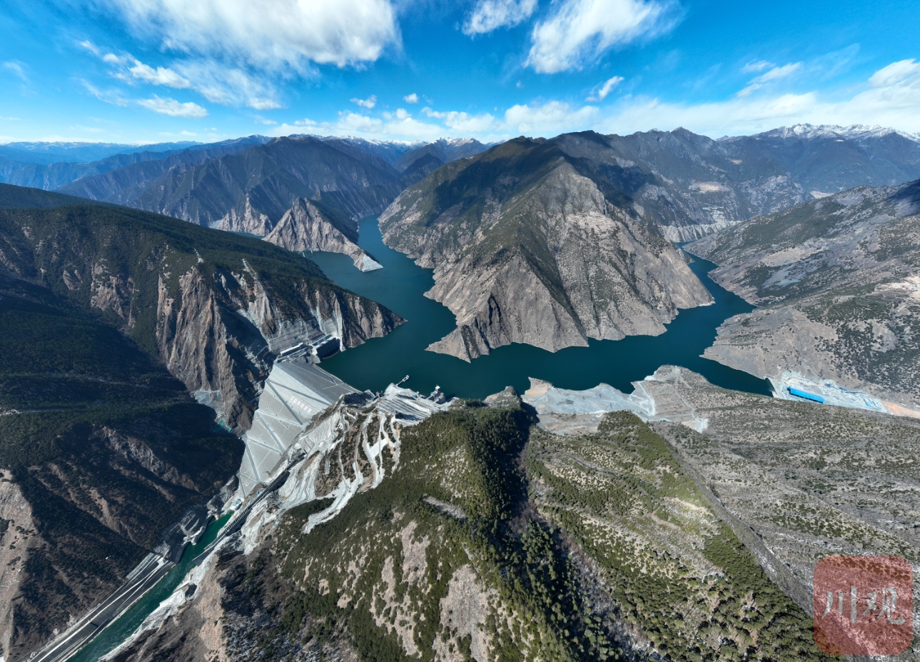 远瞰两河口水电站大坝