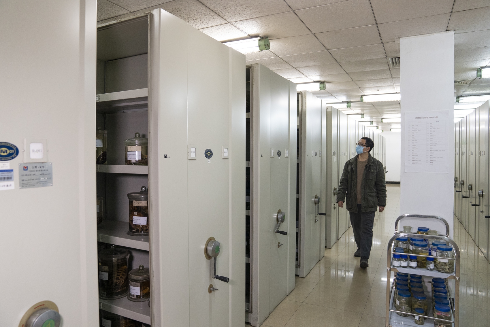 近13万号标本的搬迁是一个浩大的工程。李家堂说,每一号标本不能坏、信息不能乱,要把每个玻璃标本缸固定到木头架子里。新的标本馆正在建更高标准的密集柜,目前还在进行整理工作,他们想要借此机会,完成信息化的工作,整个搬迁过程预计需要持续半年之久。