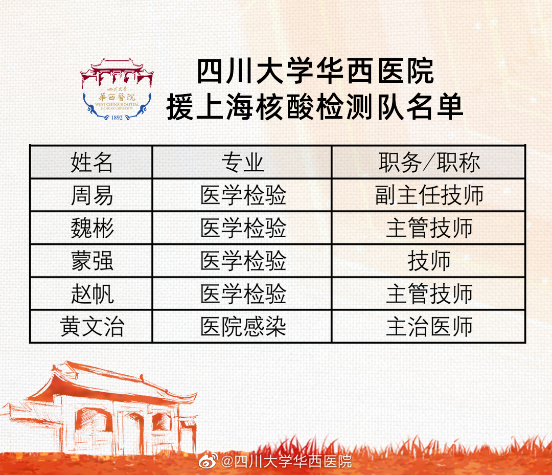 为他们加油!华西医院派出5人驰援上海