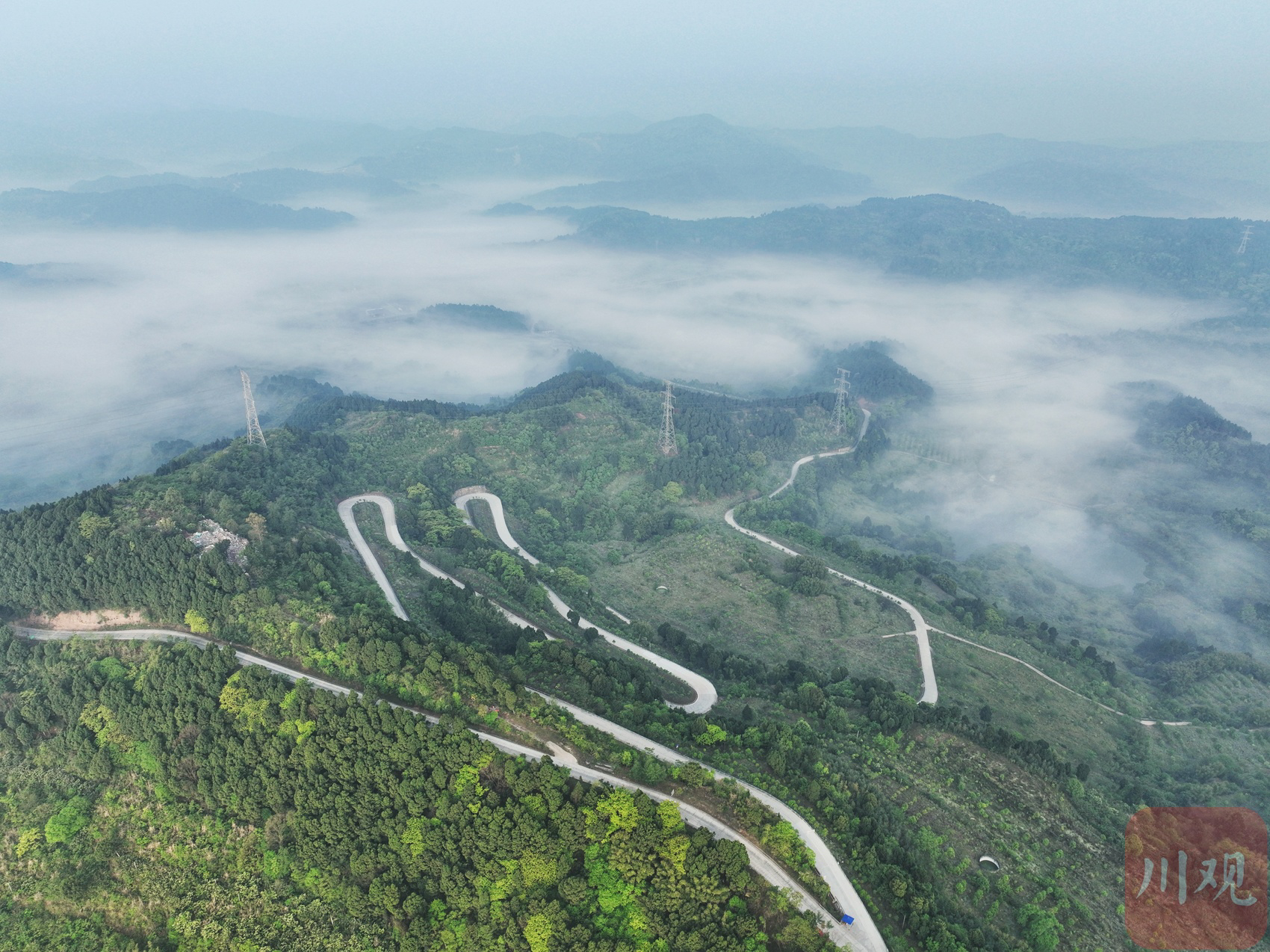 4月7日,成都气温开始回升,春日暖阳中的龙泉山脉云海缥缈,郁郁葱葱的山林呈现出动人的绿色之美。