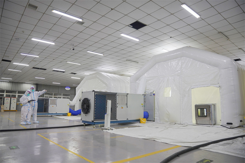为进一步提升核酸检测能力,5月15日,日最高检测能力7万管的“航母级”核酸检测装备气膜检测舱在邻水建成投用,该气膜检测舱系可移动、自动化、大通量的核酸检测实验室,若采取10混1混采技术,每日最高可检测近70万人份核酸检测样本。