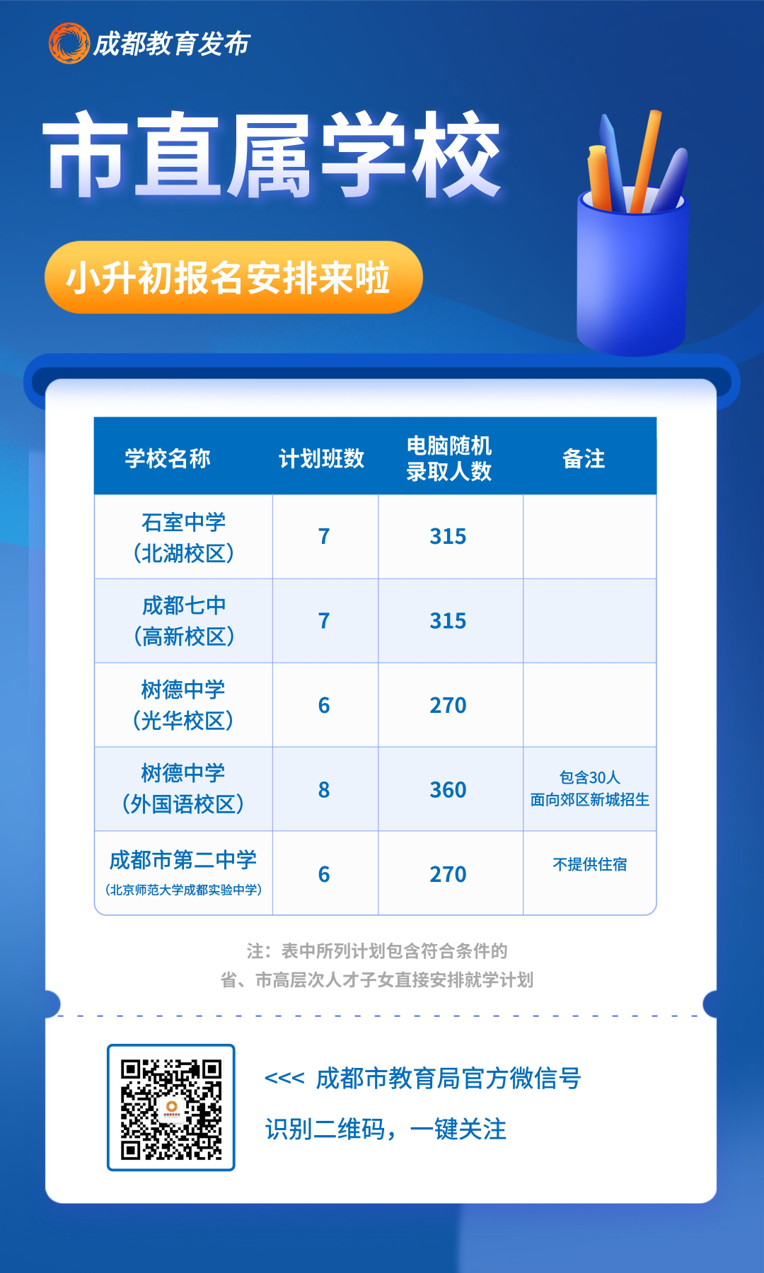 ⏰市直属学校报名电脑随机录取于6月29日进行。若报名学生人数未超过招生计划,直接录取所有报名学生;若报名学生人数超过招生计划,通过电脑随机录取确定学位。学生家长可通过“成都招考”的“小升初学位确定结果查询”系统查询学生录取结果。