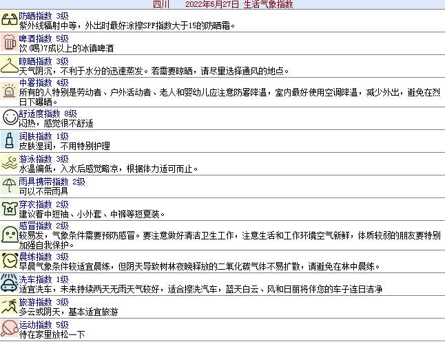 6月27日10时,四川省气象台宣布解除6月25日16时发布的暴雨蓝色预警。