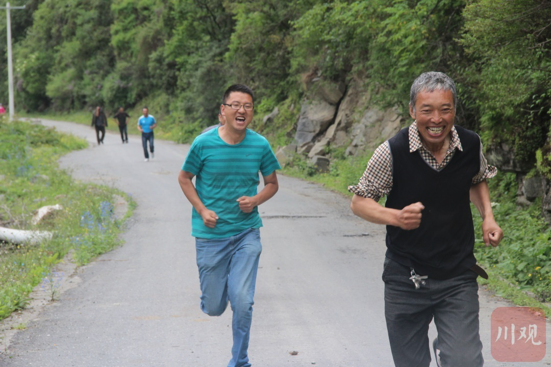 2015年,罗从兵(左一)和群众进行赛跑比赛。(金川县融媒体中心供图)