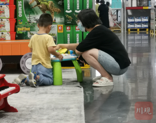 暑假,家长在成都某商场陪孩子选购玩具。谢娜 摄