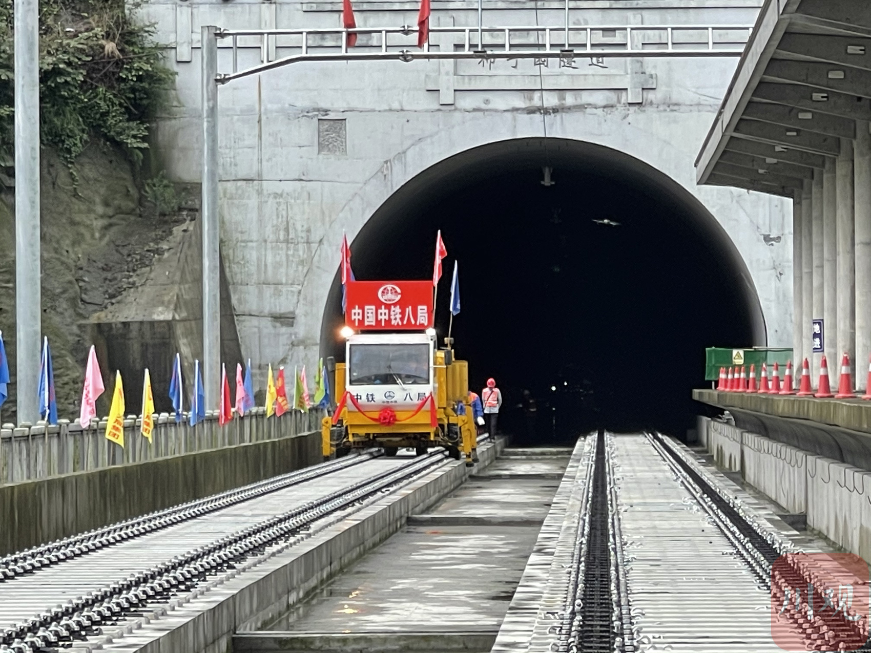 铁轨铺过成兰铁路高川站,该车站位于柿子园隧道和跃龙门隧道间。成兰铁路公司供图