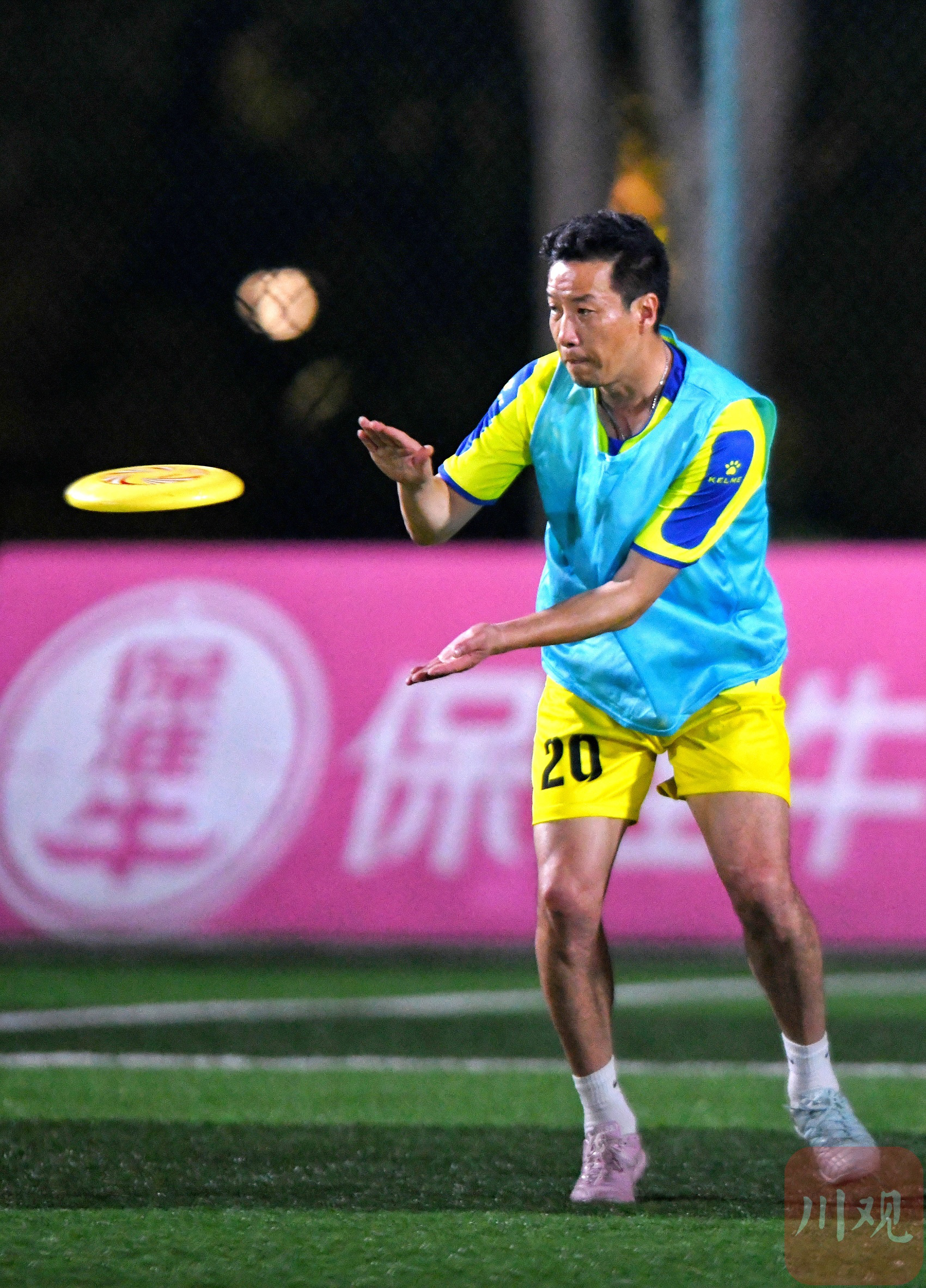与此同时,锦江区静思南巷灯火通明的公园足球基地里,6、7块足球场地就有3块场地飞盘比赛正酣。不需要高昂价格的装备,相对灵活和自由的场地,以及并不激烈的身体对抗,这些都是飞盘运动受人追捧的重要原因。