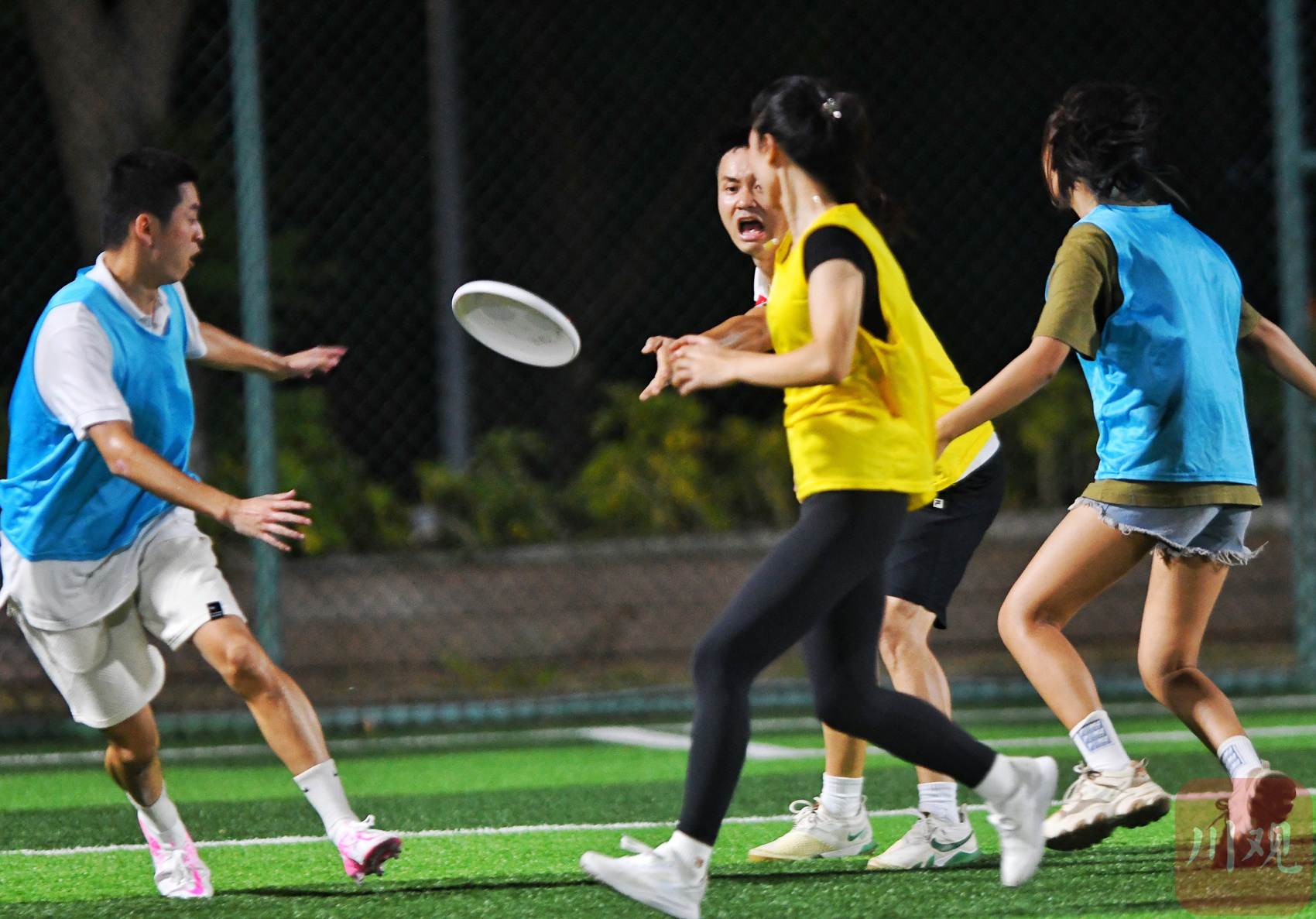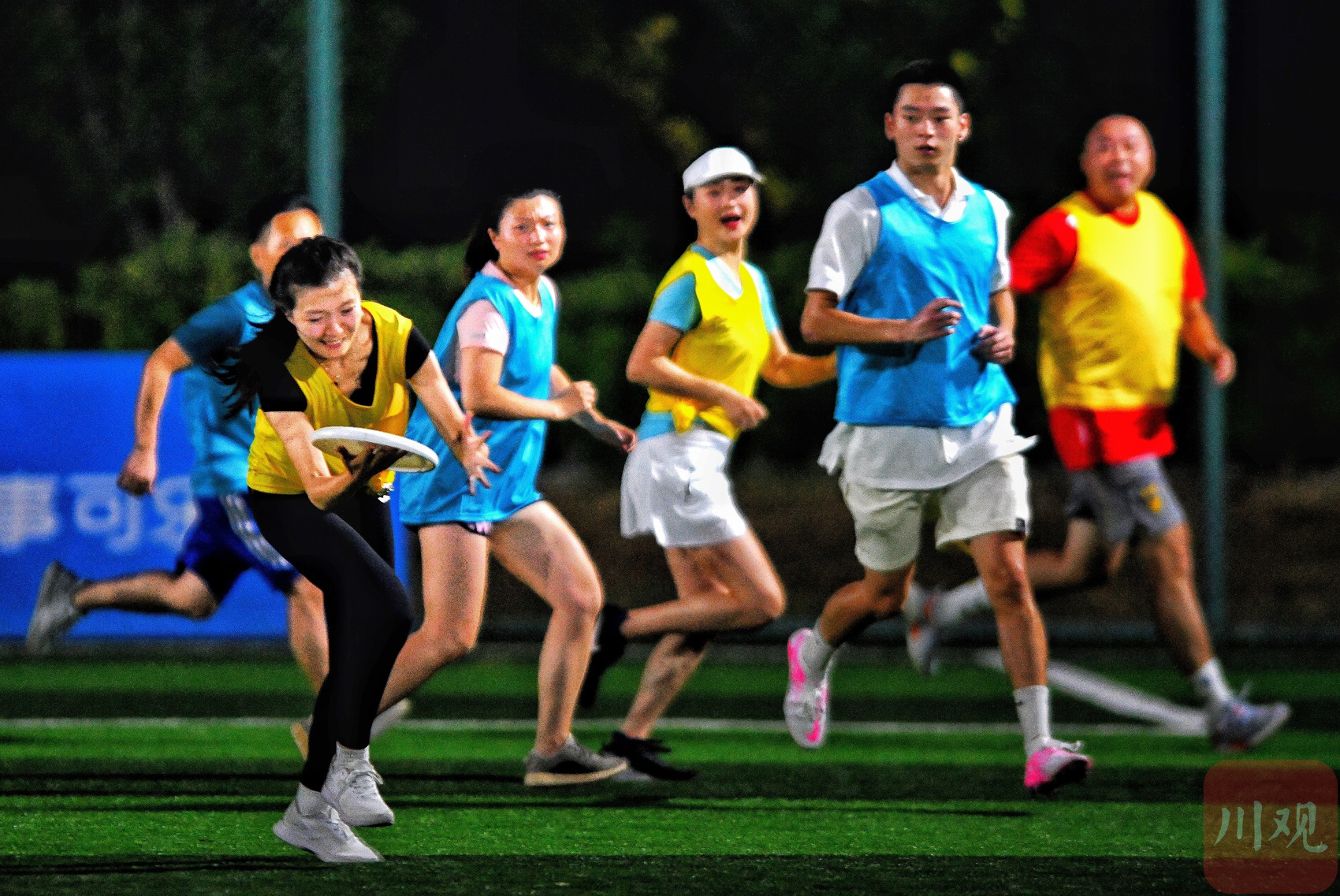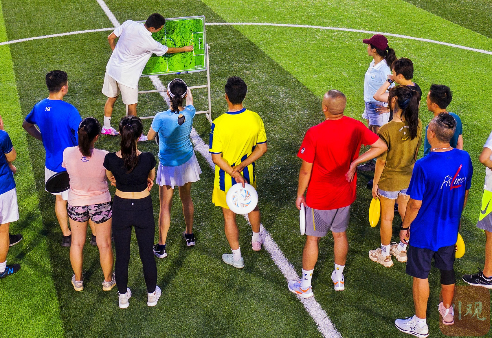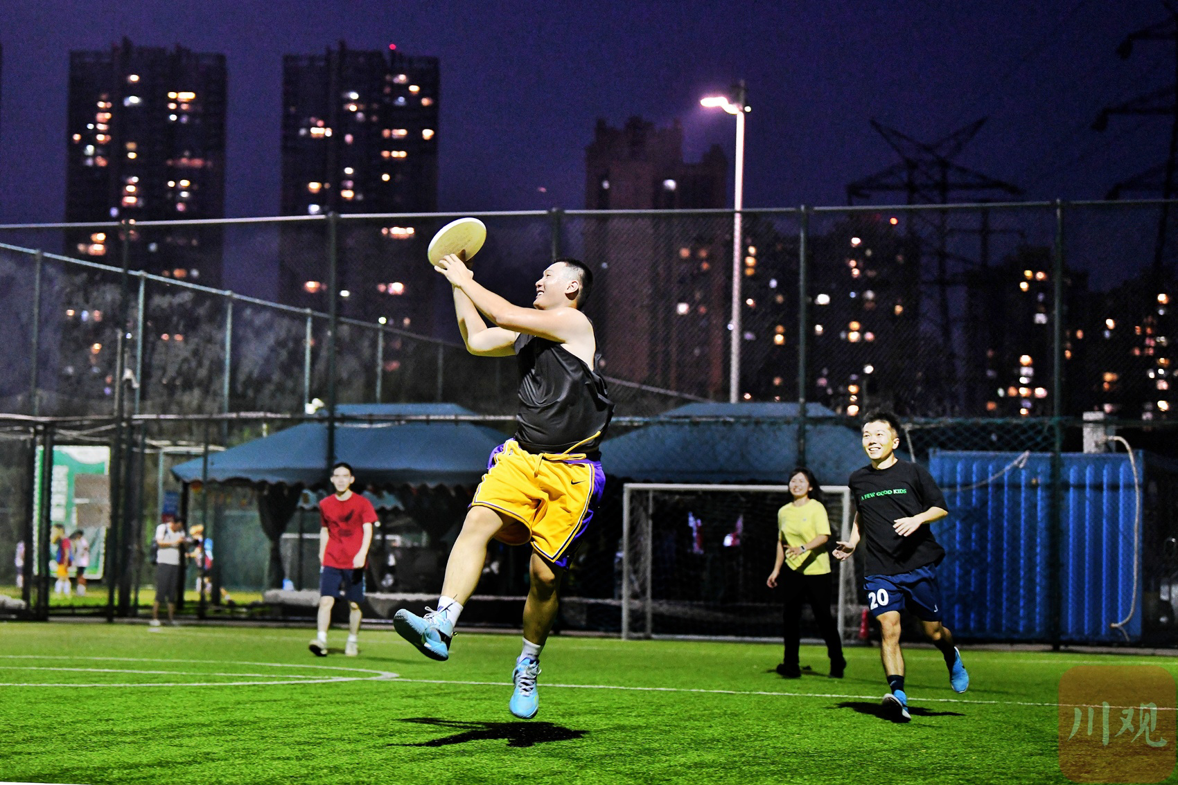 曾诚作为飞盘运动的拥趸,即使家住簇桥,也愿意赶到成都东郊一足球运动中心参加飞盘比赛。早早在几天前,曾诚就订下了13日晚上1个半小时的场地时间。“我们有个运动群,大家都是朋友和同事,喜欢玩飞盘,觉得大家每周可以聚一下。”曾诚的队友奚梓瑶擦擦额头上的汗水:“跟朋友们一起接触这项运动后,才发觉它没有高强的肢体接触。运动量也够,随时都可以爆汗。”