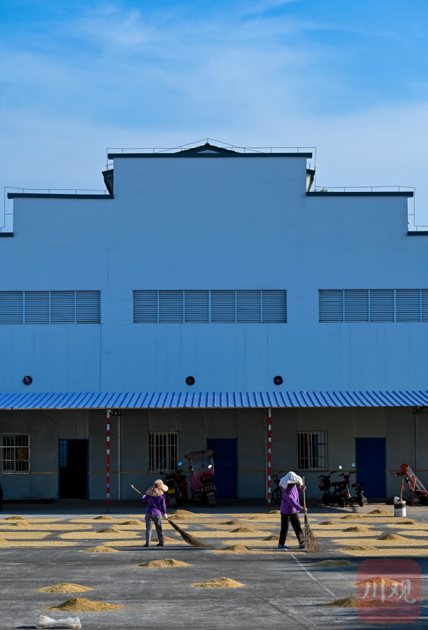 工作人员正在晾晒水稻新材料