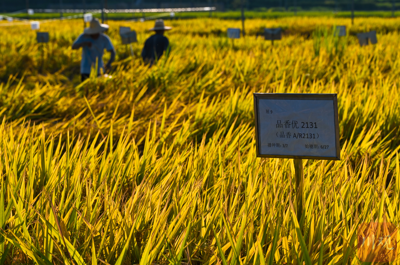 工作人员正在晾晒水稻新材料,每个方格就是一种水稻新材料
