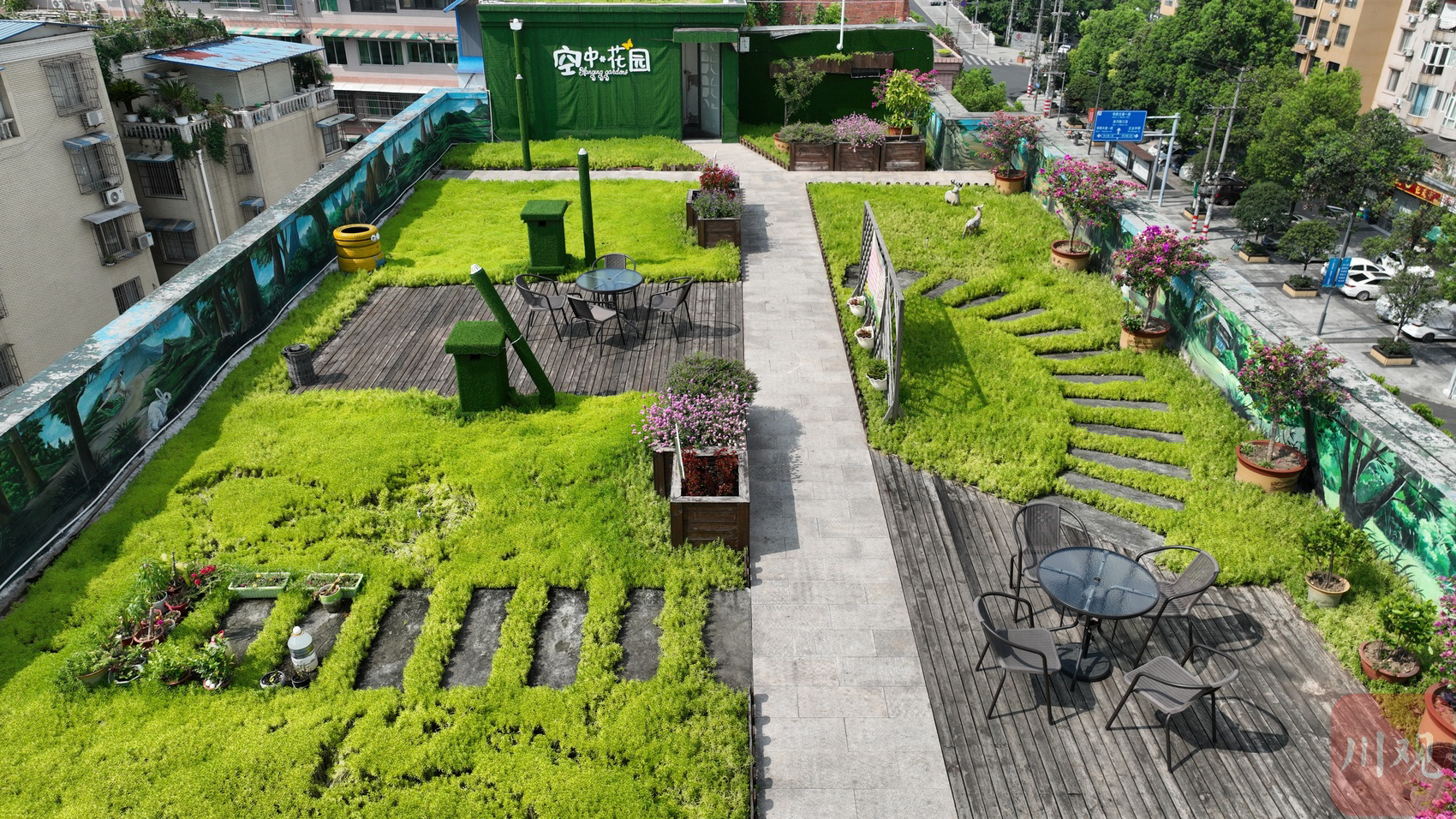 真没想到,老旧小区的屋顶变身后居然这么美。8月3日,川观新闻记者在天府新区华阳街道安公社区看到,一栋六层楼的小区楼顶绿草如茵,鲜花盛开,空中花园生机盎然。