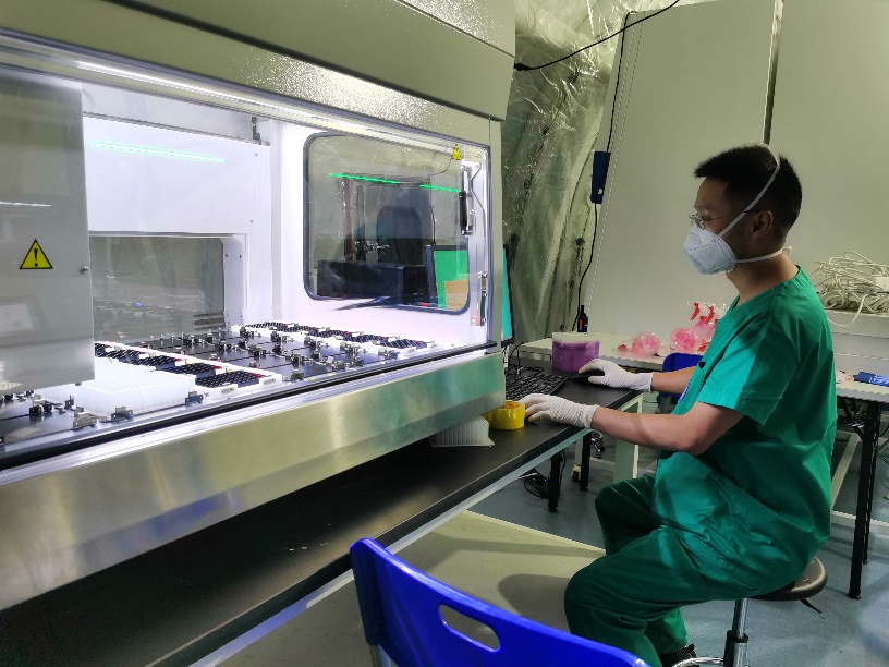 据悉,在等待方舱搭建开工的间隙,四川省人民医院队还安排了3班人马、每班12人轮流在儋州市人民医院支援核酸检测工作,24小时内累计协助完成了9200管核酸检测。
