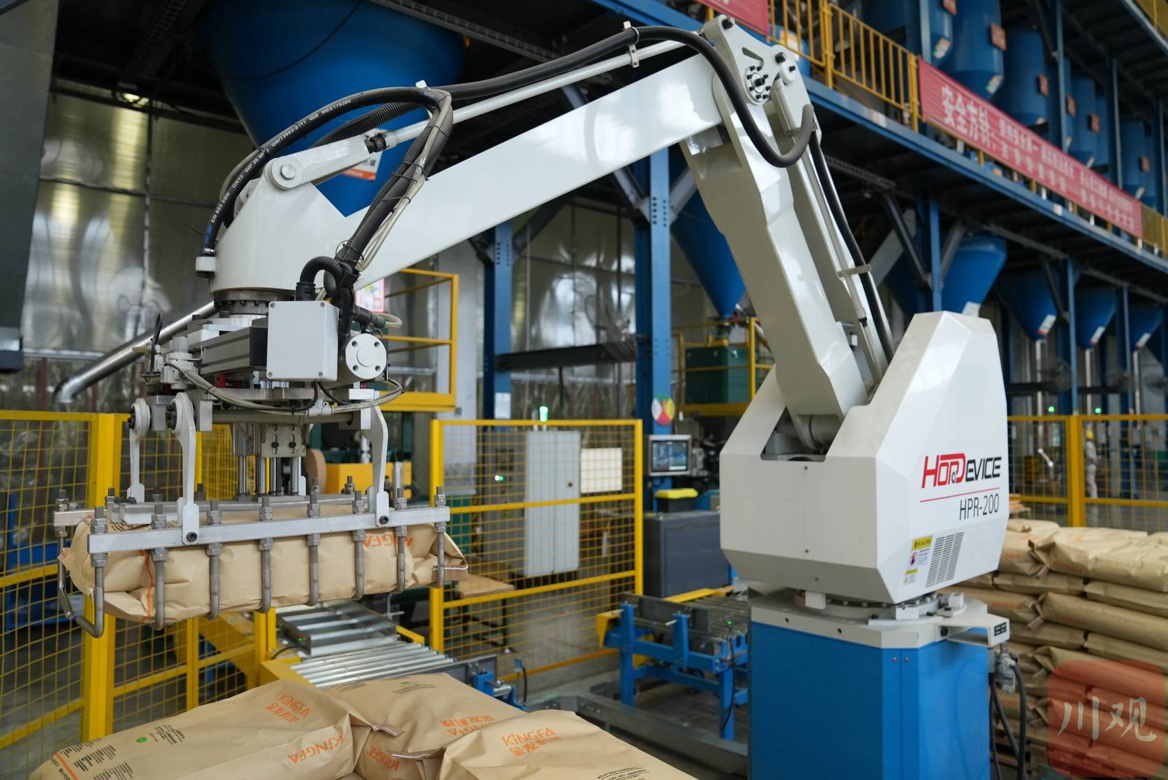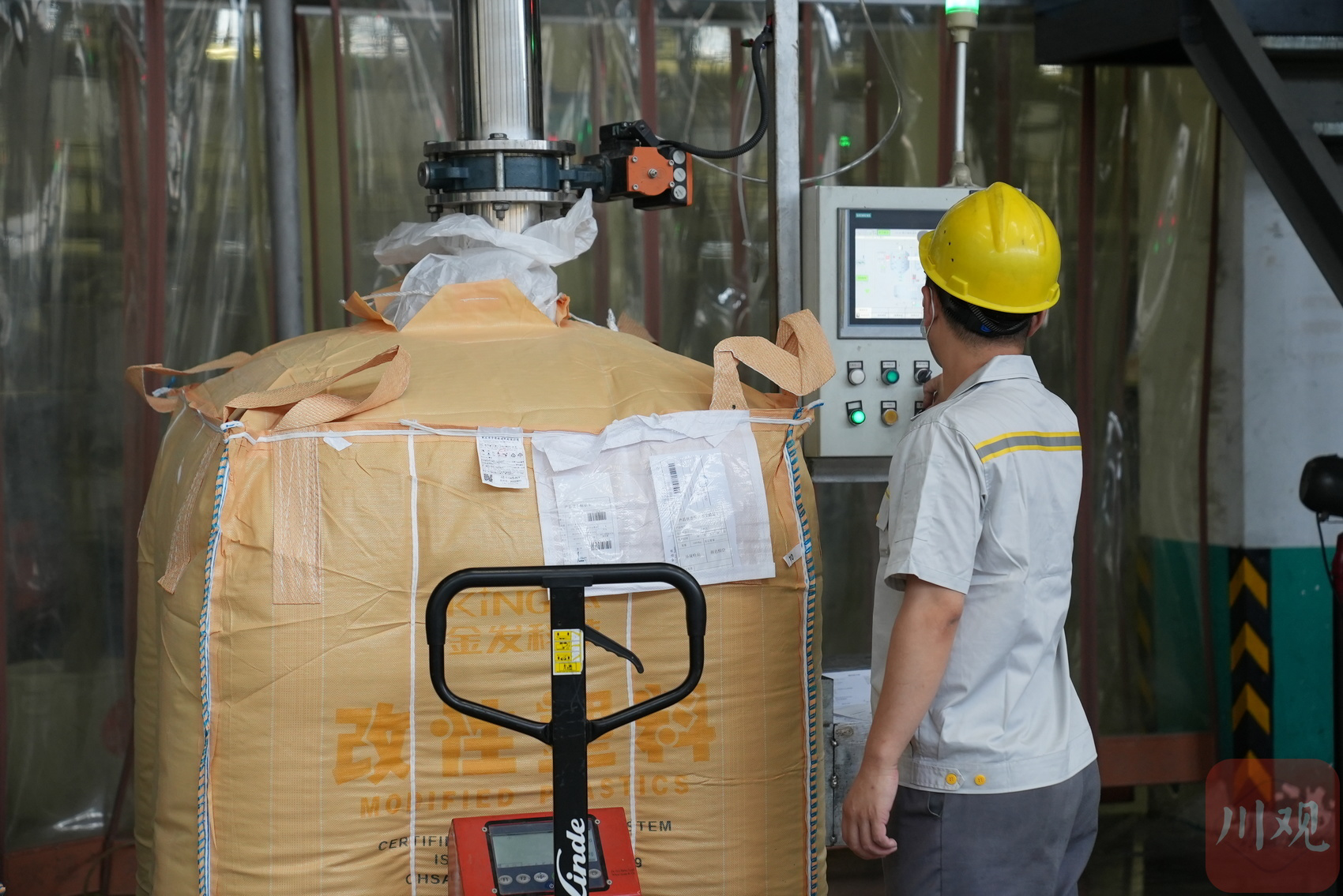 成都金发科技新材料有限公司汽车专用生产车间里,全自动化的机械设备正在打包作业。吴枫/摄