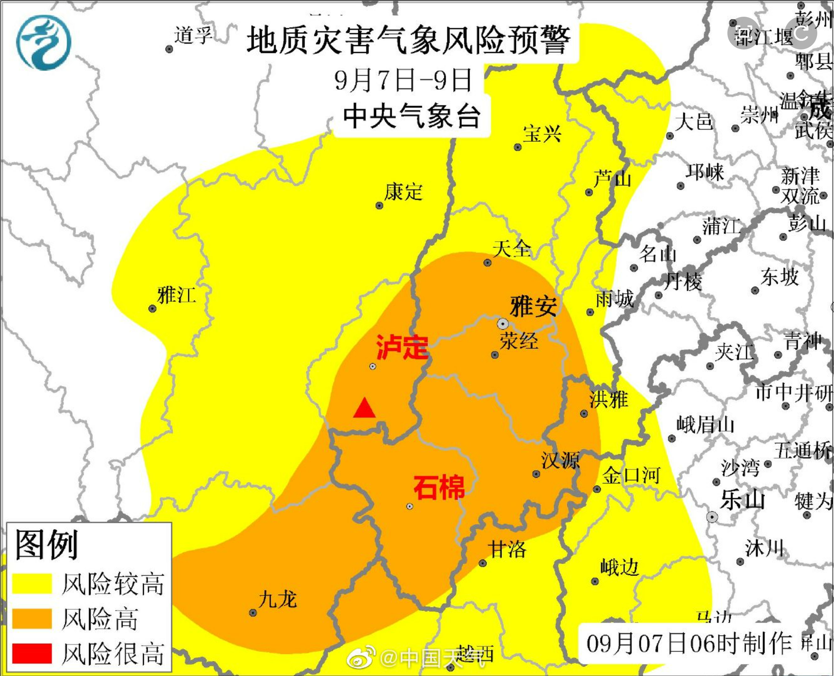 预计7日至9日,四川甘孜东南部、雅安、阿坝南部、成都西部、眉山西部、乐山西部、凉山北部等地的部分地区地质灾害气象风险较高,其中:四川甘孜泸定、康定、九龙,雅安石棉、汉源、荥经、天全、雨城区,眉山洪雅,乐山金口河区和凉山冕宁、甘洛等局地地质灾害气象风险高。