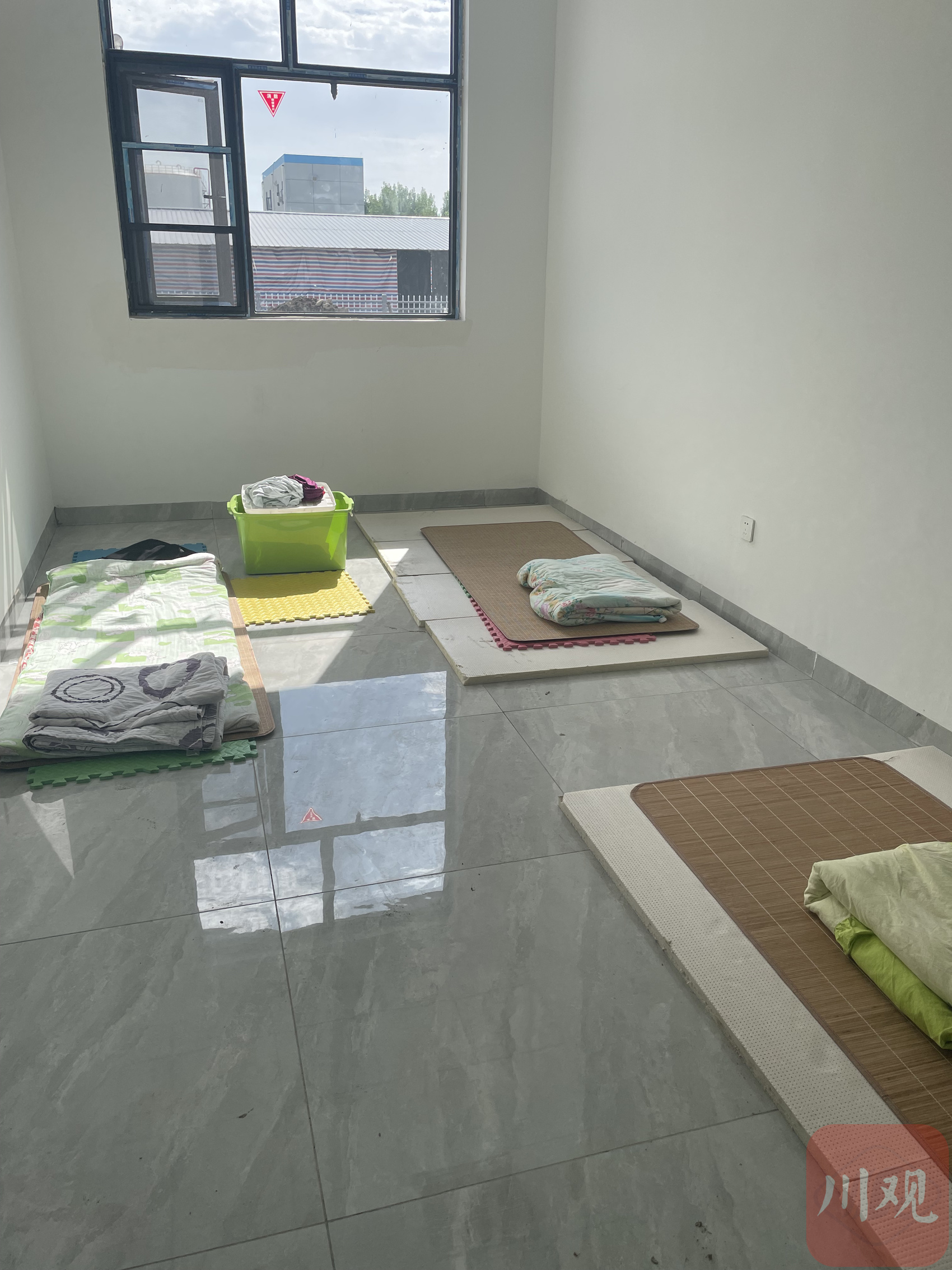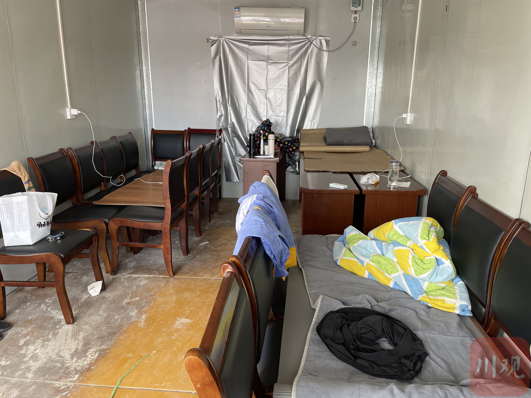 4个用作办公的集装箱,搬出办公桌,搬进高低床;床不够,就桌子椅子来凑。会议室的桌椅也被搬进集装箱,10把椅子拼成床,两张桌子拼成床,垫上紧急采购的凉席,就能凑合睡了;凉席不够,就用包装工程材料的硬纸板替代。中央控制室、配电室已经铺好了地砖,施工人员将工程剩下的保温板往地上一铺,也成了“床”。“我们只能就地取材,东拼西凑,让大家有个地方睡觉。”天顺保利公司综合部部长李清泉说,吃饭问题也联系了餐饮商家,定点送盒饭。当天下午,看着临时地铺搭起来,鸡蛋、方便面等物资运进来,一些想走的工人终于安心留下施工,李清泉悬着的心才放了下来。