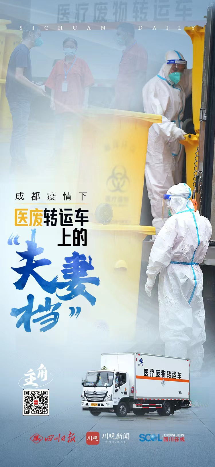 程天禄是成都瀚洋环保实业有限公司的一名医疗废物转运车驾驶员,罗福珍是车上的押运员。这家公司承担着整个成都市医疗废物的转运和处置。在本轮疫情防控中,夫妻俩的工作衔接着医疗废物处置的最后一环,把各个封控区域产生的医疗废物和按医废标准处理的生活垃圾转运到成都市医疗废物处置中心。