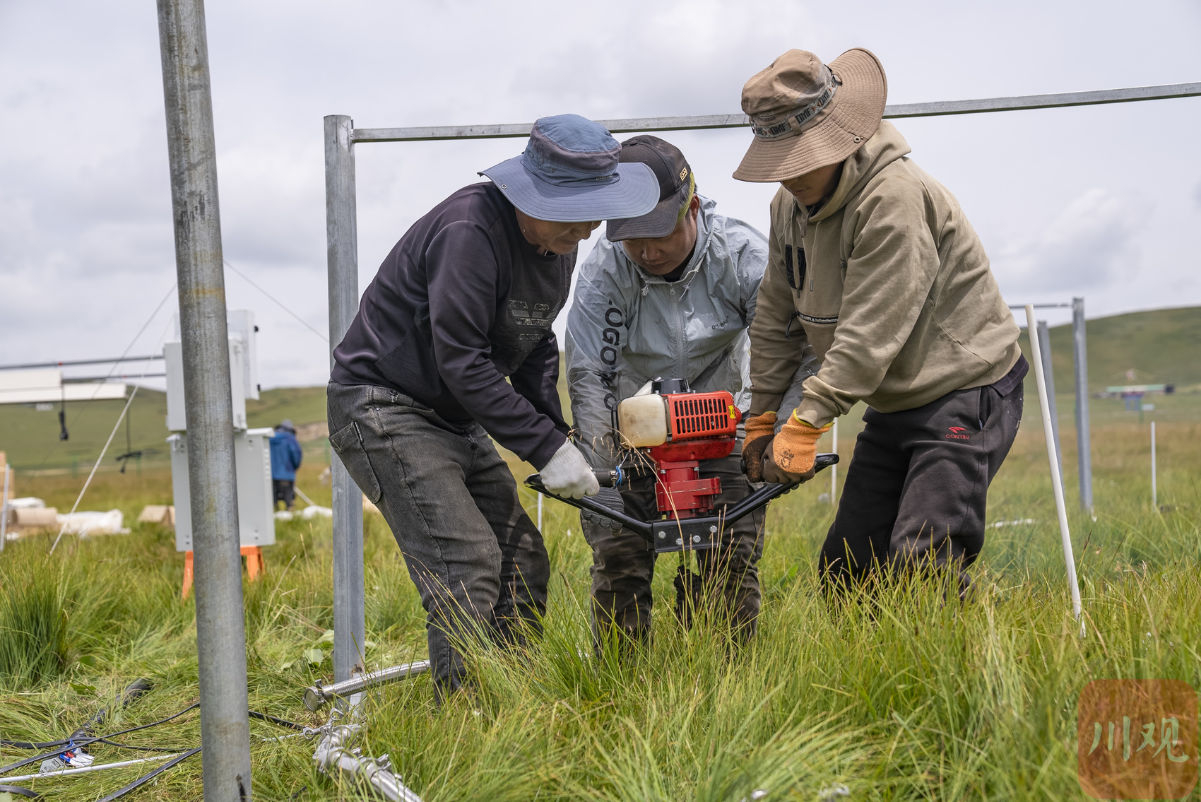 若尔盖站高寒湿地综合观测场内,工作人员正在布置试验平台。
