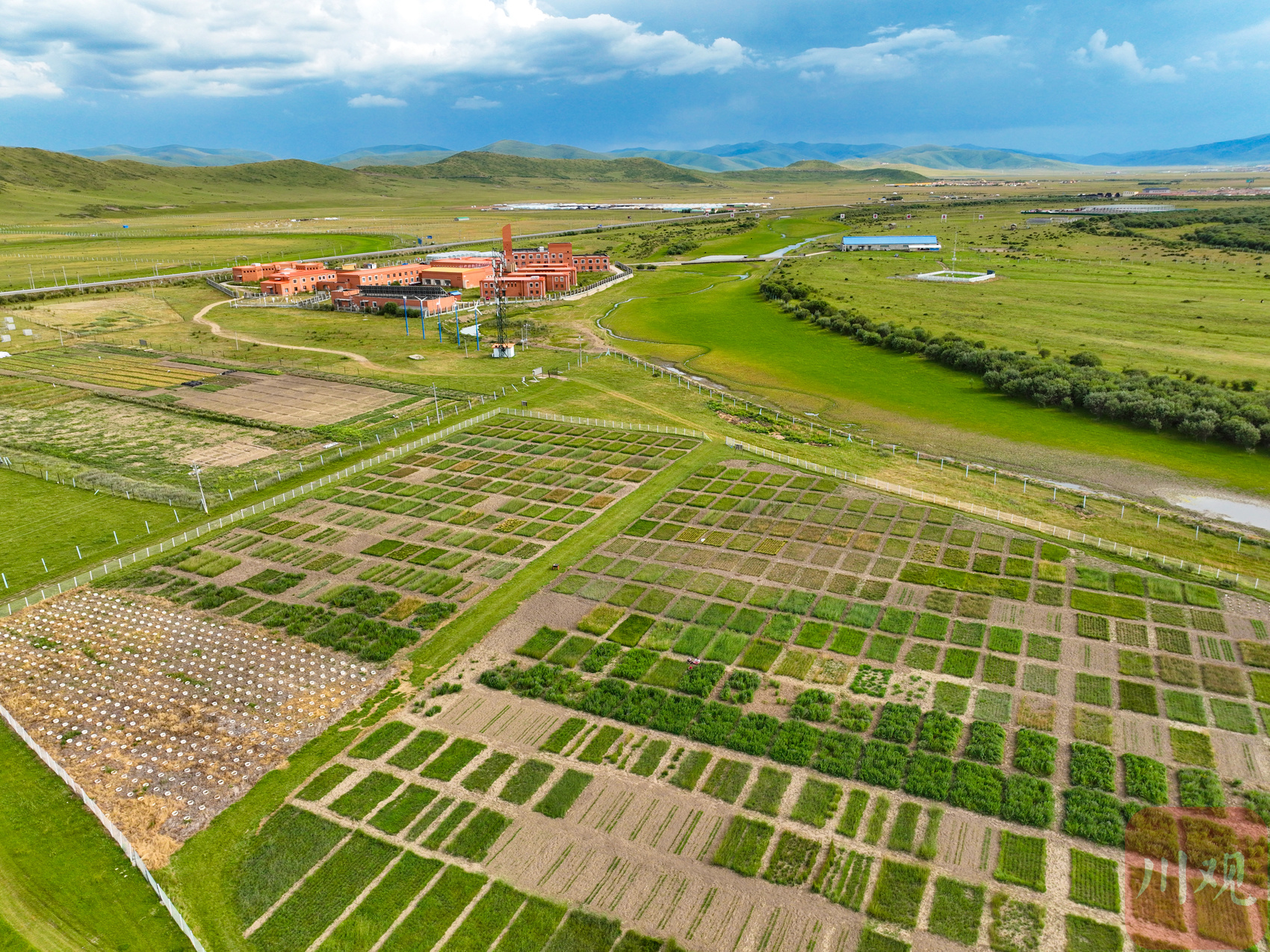 午后的清风拂过,牧草像海浪随风律动。从空中俯瞰若尔盖站的牧草种质资源圃,100多亩的资源圃被分成了若干区块,颜色深浅不一。因为每个区块内种植的牧草种类不同,其颜色、高矮、形状、产量各异。