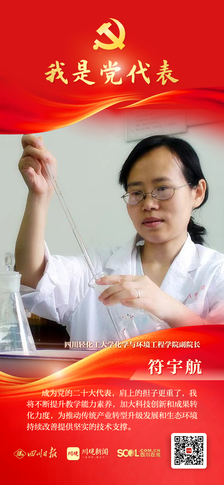 他们来自生产和工作一线,是全省510多万共产党员的优秀代表;他们将肩负全省党组织和党员重托,赴京出席党的二十大。川观新闻推出“我是党代表”专栏,报道我省出席党的二十大代表中的25位基层党代表,展现他们践行习近平总书记系列重要讲话精神和推动新时代治蜀兴川再上新台阶的奋进故事和先进事迹。