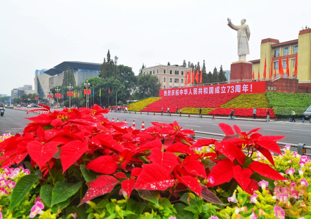 10月1日,中华人民共和国迎来73周年华诞。在成都天府广场,市民游客齐聚,共同见证五星红旗冉冉升起的庄严时刻。