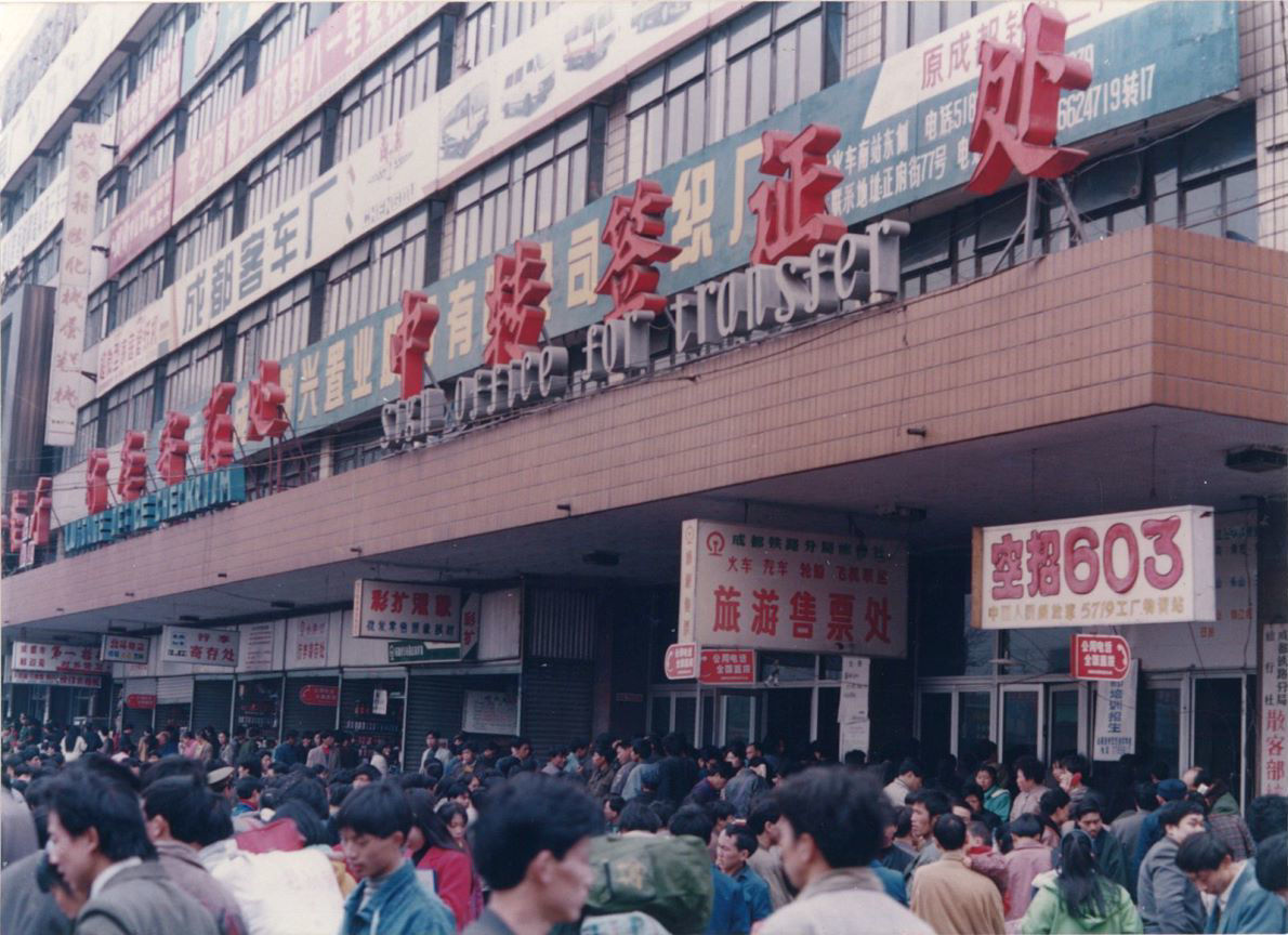 改革开放大潮兴起后,节假日尤其是春节后出行,成都站站前广场上常年聚集着排队买票的旅客,人挨着人,把偌大的广场挤得水泄不通,从五块石到售票大厅,短短几百米要走半个多小时才能“突围”。“那时买票只能去火车站。”戚军说,后来,代售点兴起,县级城市基本都有了代售点。