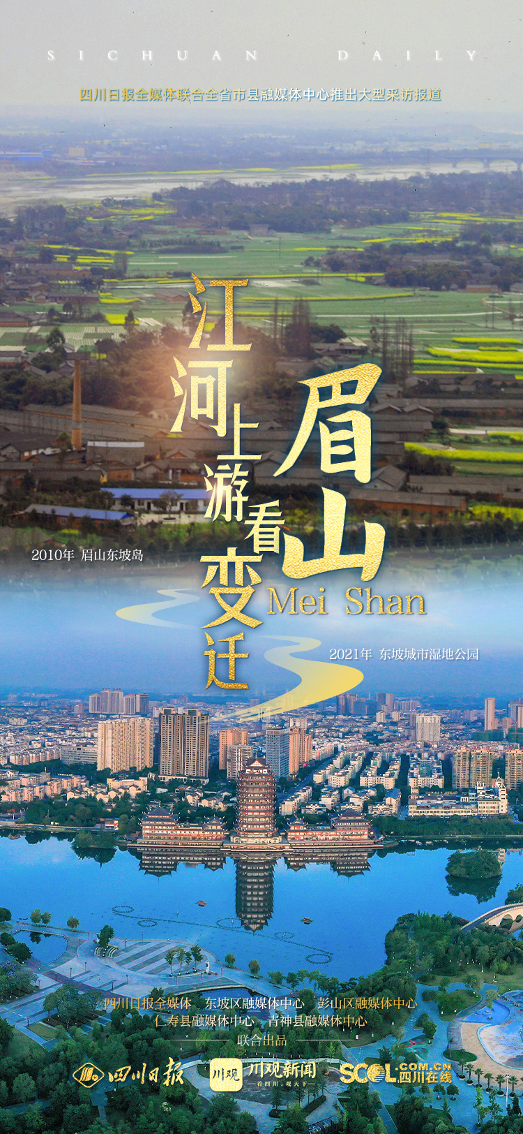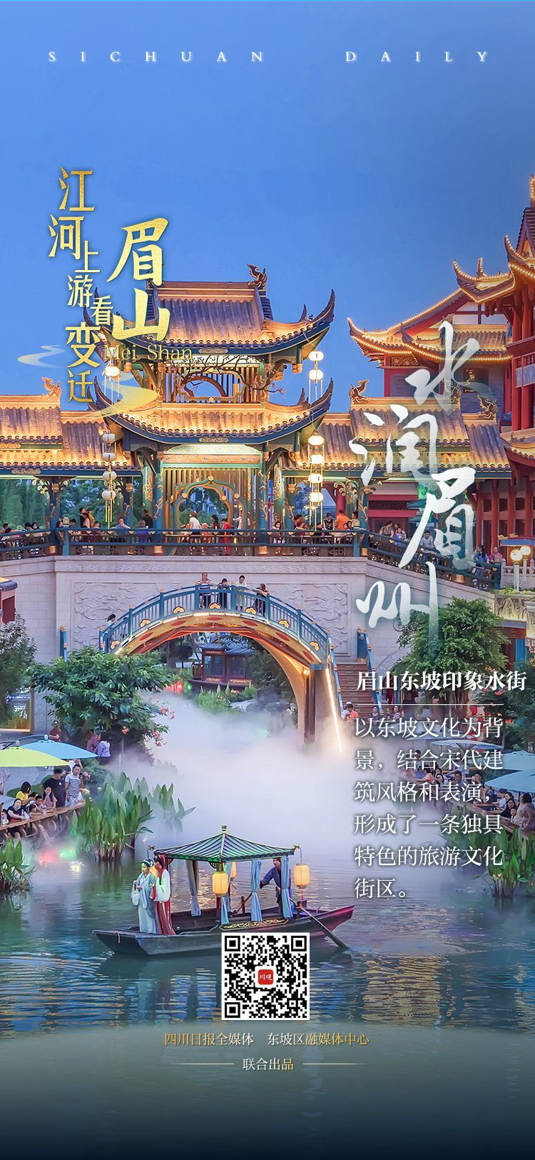 一组九宫格海报,带你一览岷江流域的眉山标志性地点,在江河之上,见证眉山的发展和变迁。