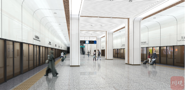 和常见铁路车站不同,这个位于地下的高铁车站,将设置全封闭的站台门,类似于地铁站台上的屏蔽门。文状告诉川观新闻记者,天府机场站的站台门将是适应所有高铁车型的智能站台安全门。“它让站台形成封闭空间,通过新风系统改善站台乘车环境,也能起到两层安全防护的作用。”