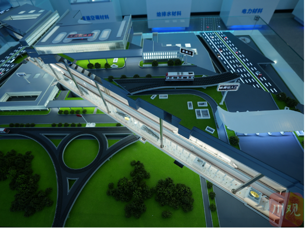 在蜀道集团成自高铁天府机场站站后工程项目指挥部,通过一组模型,川观新闻记者看到了投用后的天府机场站以及天府国际机场GTC全貌——