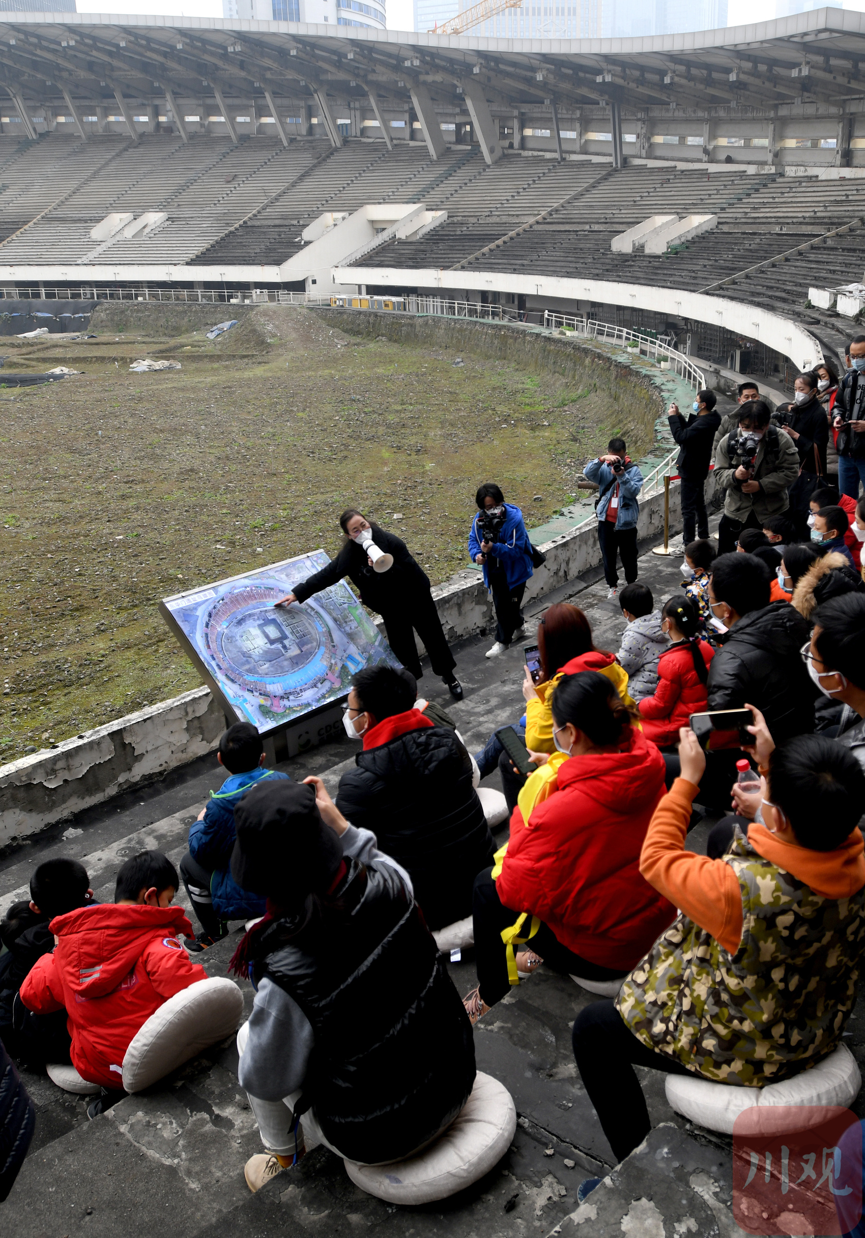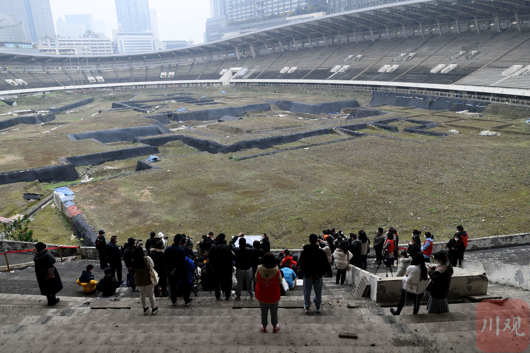 12月11日下午,时隔9年,成都东华门考古遗址公园首次对市民开放,活动方邀请了20组市民家庭登上原成都市体育中心的看台,一睹东华门遗址容貌。