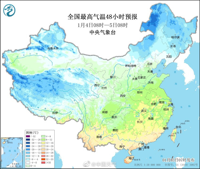 今天(1月3日)至5日,我国大部地区升温为主,最高气温20℃线可达长江沿线。由于冷空气缺席,华北、黄淮等地雾和霾天气发展,局地有重度霾,能见度较低,公众外出需做好防护,注意交通安全。