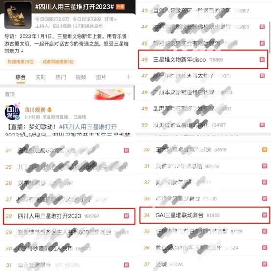 通过全媒体平台的创新传播,让新年演唱会的舞台无限延伸,让三星堆文化传播拓宽到全网范围,引发全网好评讨论,花开天下国韵文化传承的名片再一次全网出圈。