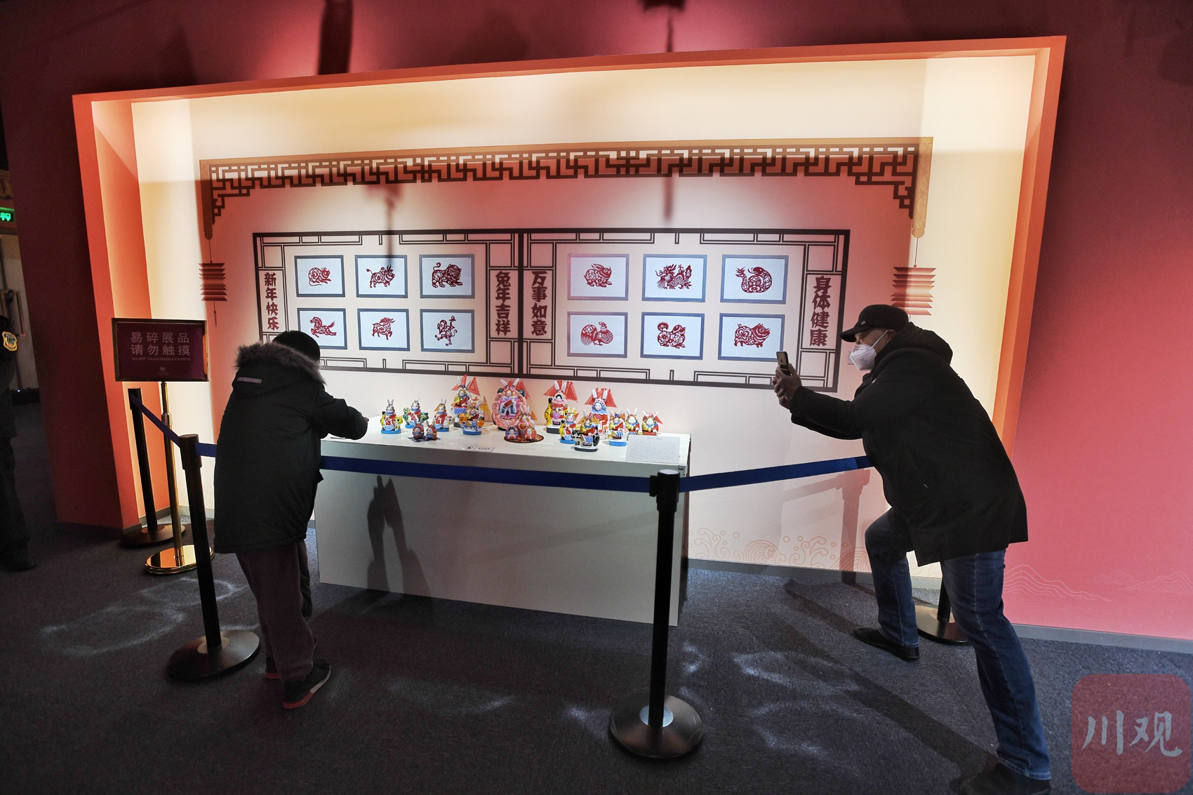 1月18日,四川博物院贺岁展“吉祥兔宝——癸卯兔年生肖主题文物展”向公众开放,展出馆藏兔文化主题文物43件/套,其中一级文物16件。包括东汉西王母玉兔捣药画像砖、宋代的十二生肖时辰铜镜、在成都西郊王建墓出土的“王建兔首谥宝”、“夜月明千里心”兔形钮印、生肖动物纹织锦等文物。
