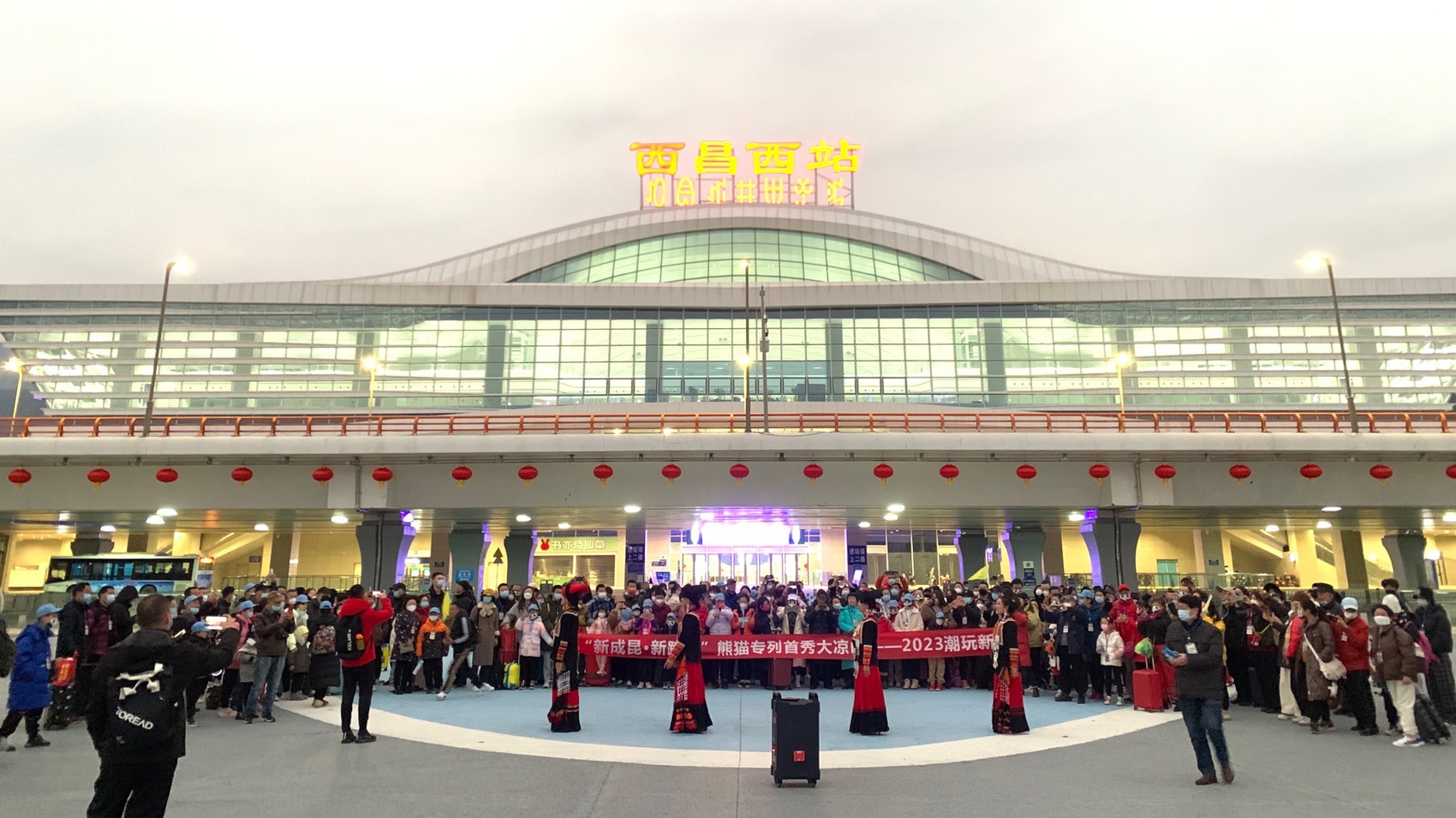 2022年12月26日,成昆铁路复线全线正式贯通运营。今年春节期间,成都局集团公司将铁路交通优势和四川旅游资源充分结合起来,推出了“熊猫专列”开进大凉山旅游产品,作为新成昆铁路开通后首趟开行的旅游专列。据了解,该趟“熊猫专列”具有一线多点、特色集中、便捷畅达的特点,带领旅客游览西昌邛海、建昌古城、金鳞沙滩、螺髻九十九里瀑布温泉等著名景区,品尝大凉山野菜汤锅、傈僳族簸箕宴、西昌火盆烧烤等地方美食。