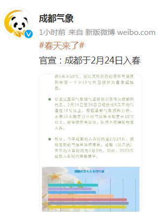 2023年成都入春时间略微偏早